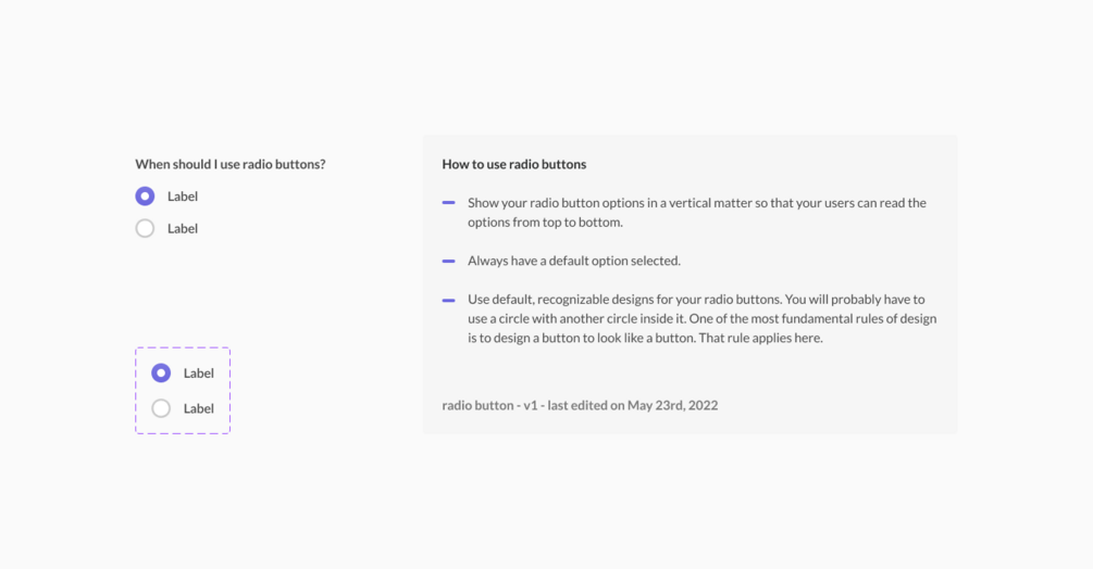 This is what the design system looks like for radio buttons. Download the design system now to make full use of it.